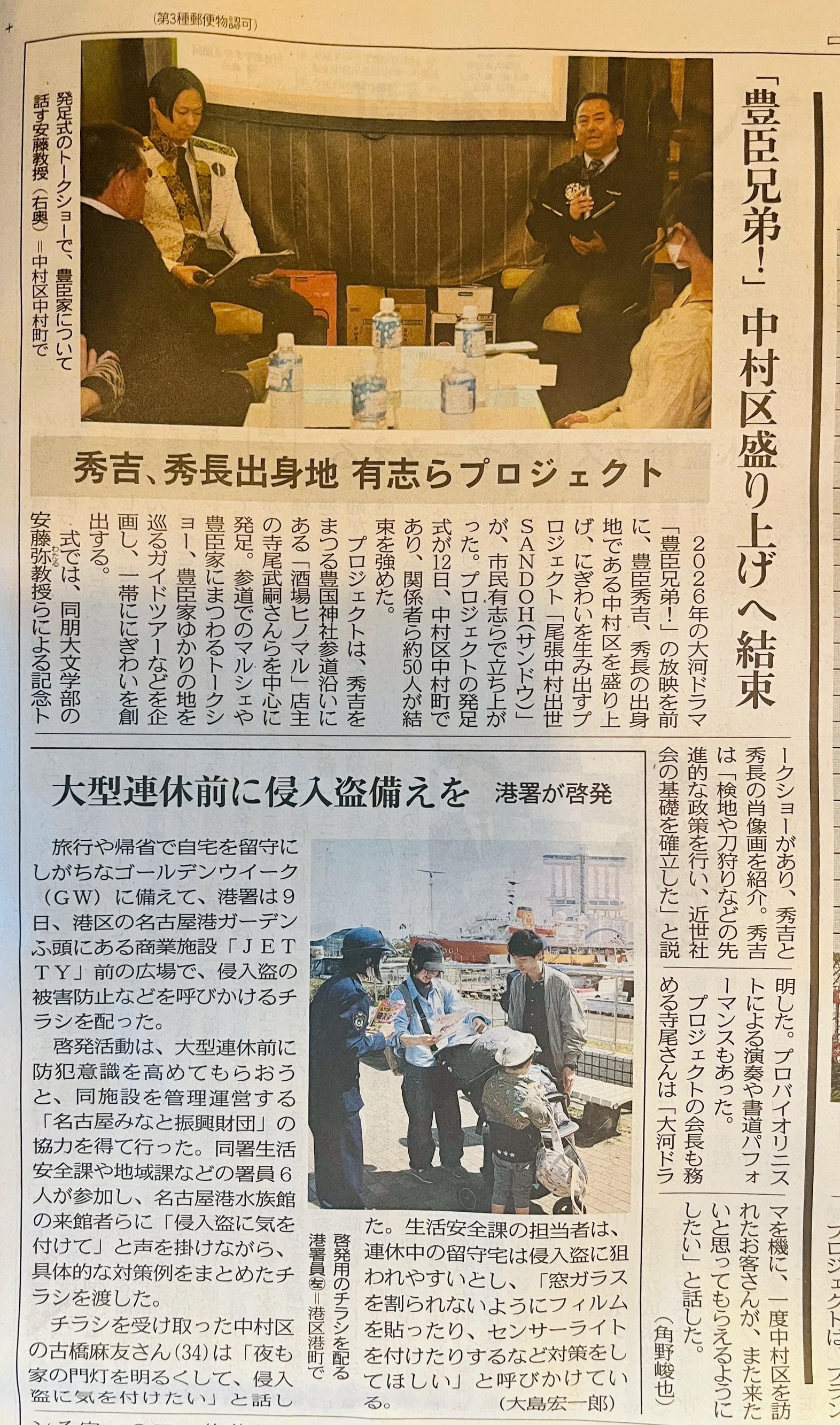 4/12に実施した発足式の様子が4/13の中日新聞に掲載されました。
